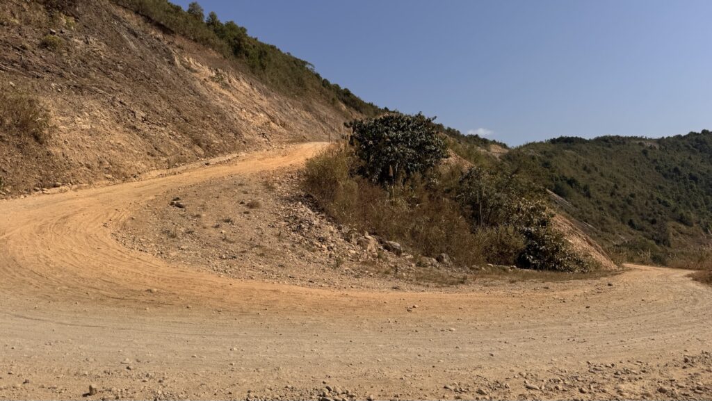 Next morning, I set out to complete the section to Phonsavan, taking route 9303. You can tell by the numbering how minor this route is, but still it’s traversed (and ruined) by the trucks hauling ore from the gold mine.