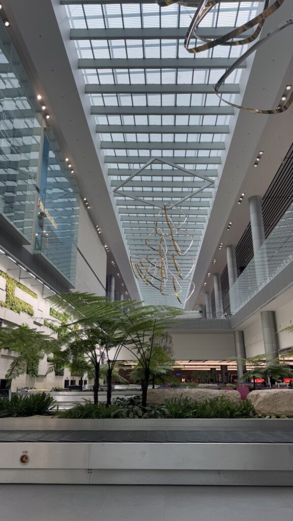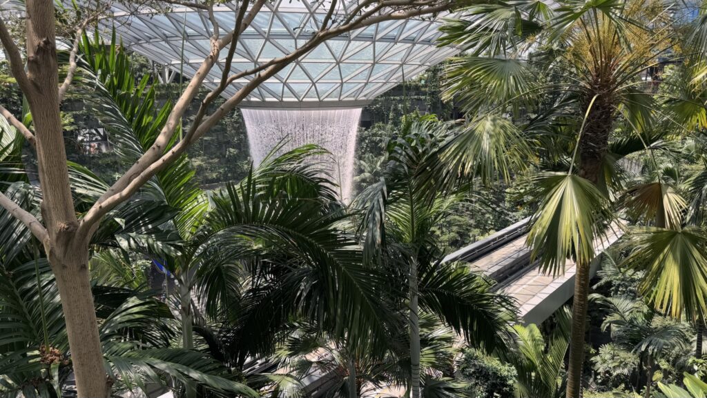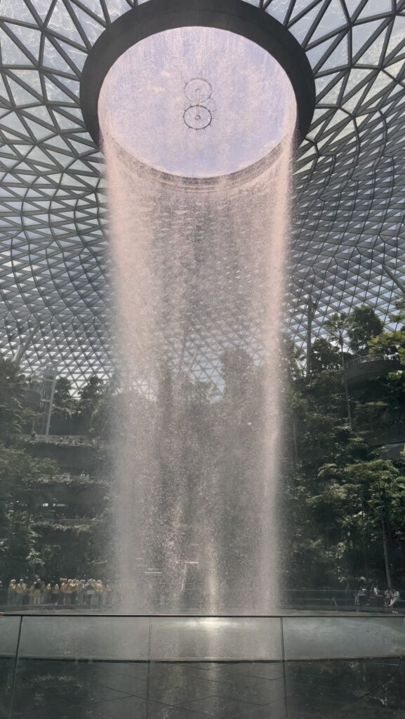 What this effectively means is that nestled between Terminals 1, 2 and 3 is a huge luxury shopping centre, and the centrepiece of the centre is the Rain Vortex. As āthe worldās tallest indoor waterfallā, up to about 40,000 litres of water per minute fall from the glass ceiling to the basement level. Itās undeniably impressive, but not something I spent much more than 10 minutes gawking at.