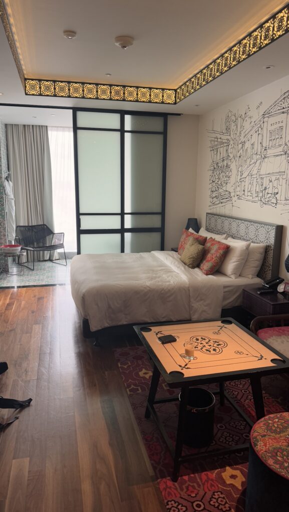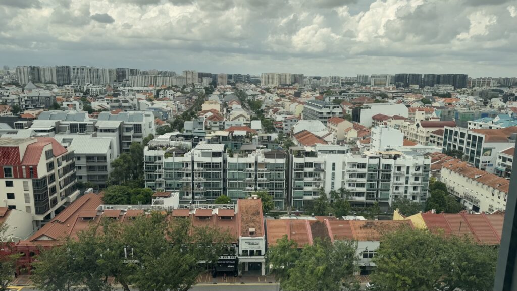 Finding a half-decent, reasonably-priced hotel with a window is not easy in Singapore. Only through a clever combination of my employerās corporate code and being an IHG member did I settle on the Hotel Indigo Singapore Katong. Itās really nice, and that membership thing got me a room upgrade, that looks out over the city from the floor-to-ceiling windows in the bathroom.