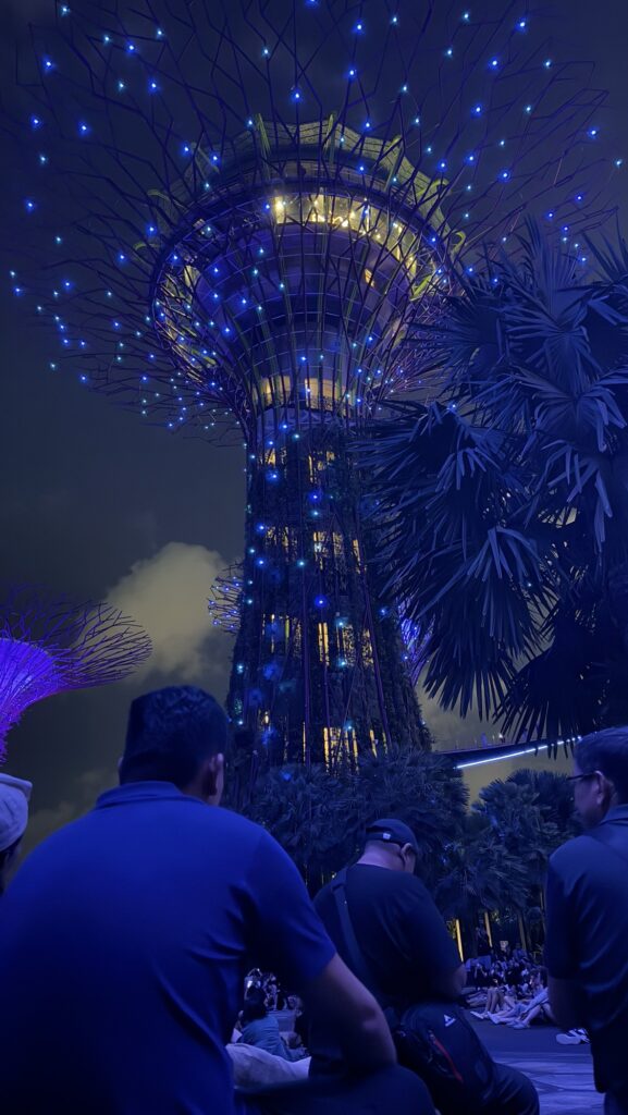 Another of Singaporeās top tourist attractions, I took a look in the evening after dinner. Again, there are paid attractions to visit, but wandering around is free and I was just in time for the twice a nightly āGarden Rhapsodyā which was a medley of opera classics booming while the huge metal trees (designed as ventilation for other buildings) swim in LEDs. Itās ever so slightly on the wrong side of classy.