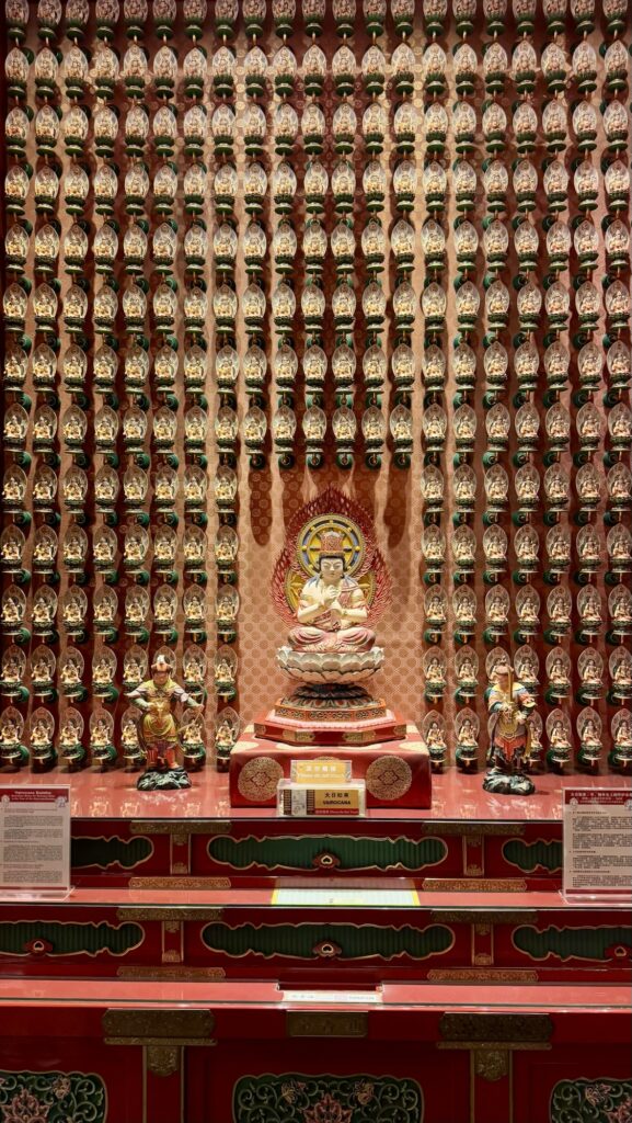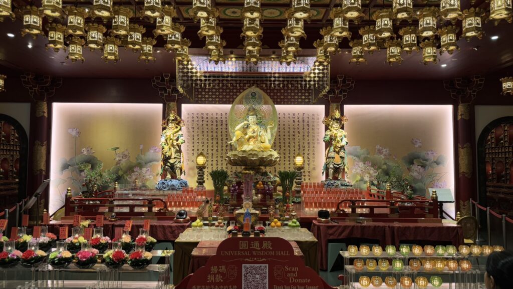 The abundant gold leaf in the Buddhist temple felt a bit excessive next to the pleas for donations.